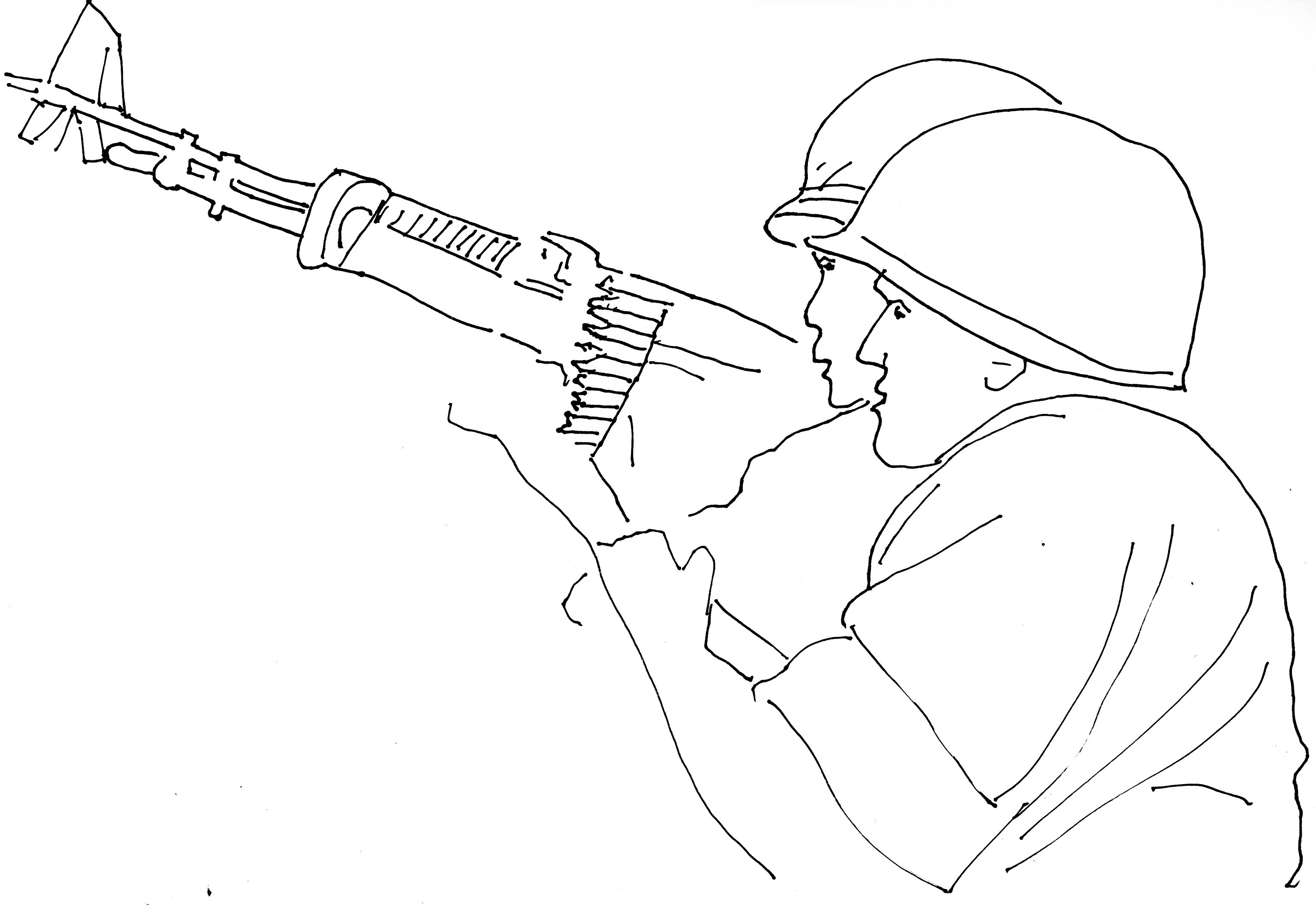 “How come you ain’t got no gun? MPs gotta have a gun. Frank, get this MP a gun. Joey one too. He’s a turncoat for bringing the MPs out here.”