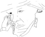 She takes my hand, cracking each knuckle, and pressing extra hard into the muscle by my thumb. Then she repeats it on my left hand. She says the pain and the hurt cleanse my body of tension and bad diet salts, saying I seem really tense. Then she works on my arms, stretching out the biceps and triceps. From behind my back, she has me straighten up as she twists my head from side to side. Placing one hand on my forehead and the other at the base of my skull, she lifts my head away from my shoulders, turning it left and right. Then she lifts my skull straight up and holds it for thirty seconds. She removes my tee-shirt and starts on my back, rubbing beside my backbone with long strokes up and down. With each push toward my head I feel a tingling up my neck and into my scalp. With each push down my back, the tingling and warmth shoot into my buttocks and legs. Taking her thumbs she pushes into the upper flesh on both sides of my butt, hitting a nerve that causes me to twitch.