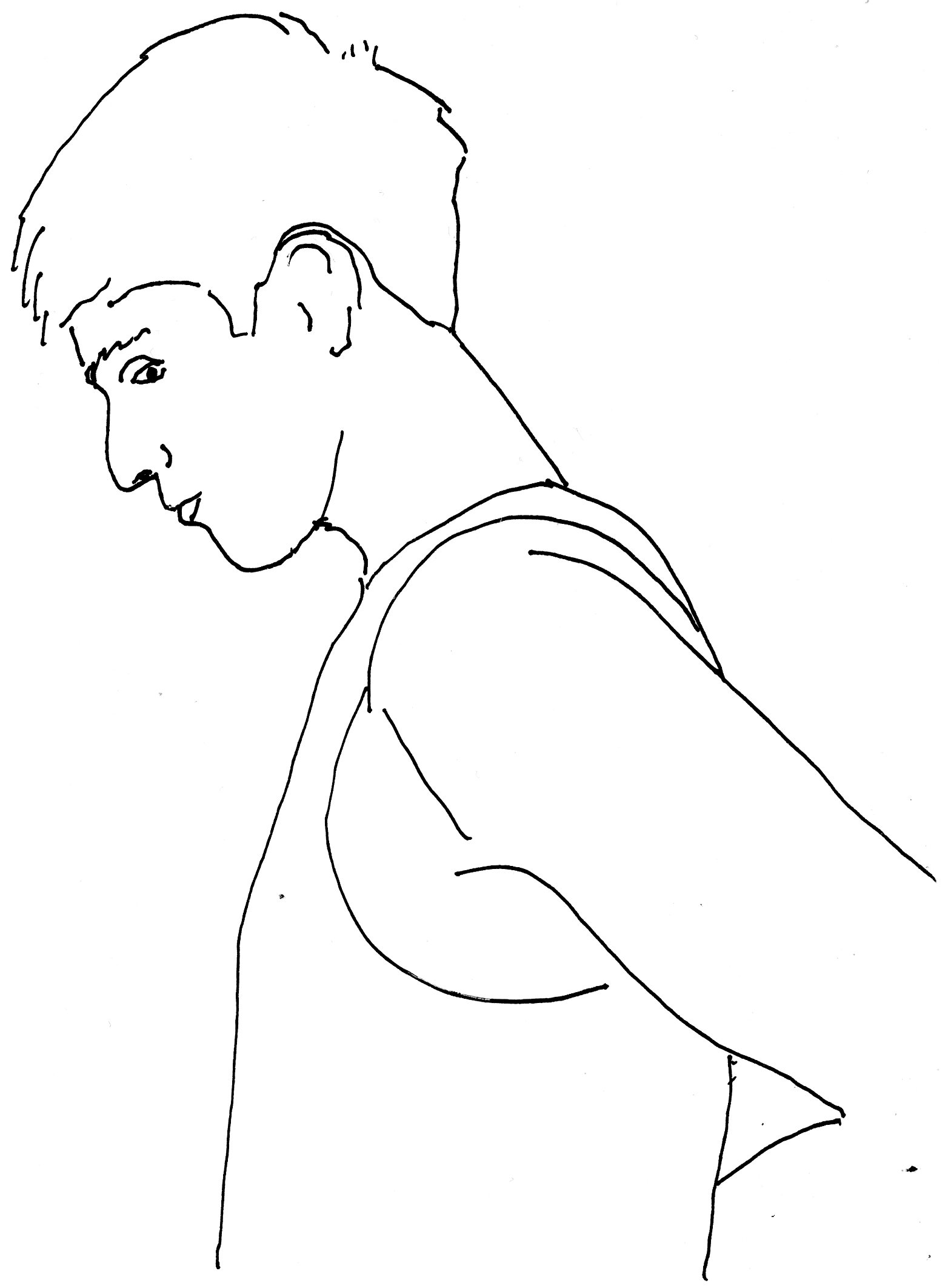 “Not really. It’s just a habit. I don’t care.” Again he looks down.