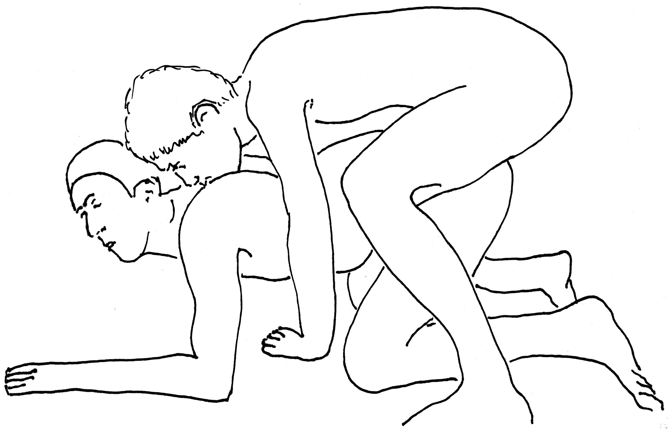 Inside six naked boys cower in submission, as Doug sits in a ceremonial chair. I sit at his feet. He takes out a short bull whip and cracks it in the air. The boys jump up and form a dancing circle in front of us, whooping and crying out as Doug snaps the whip. The faster he cracks, the more manic they dance, with the boys beating themselves and each other, whirling around the room.