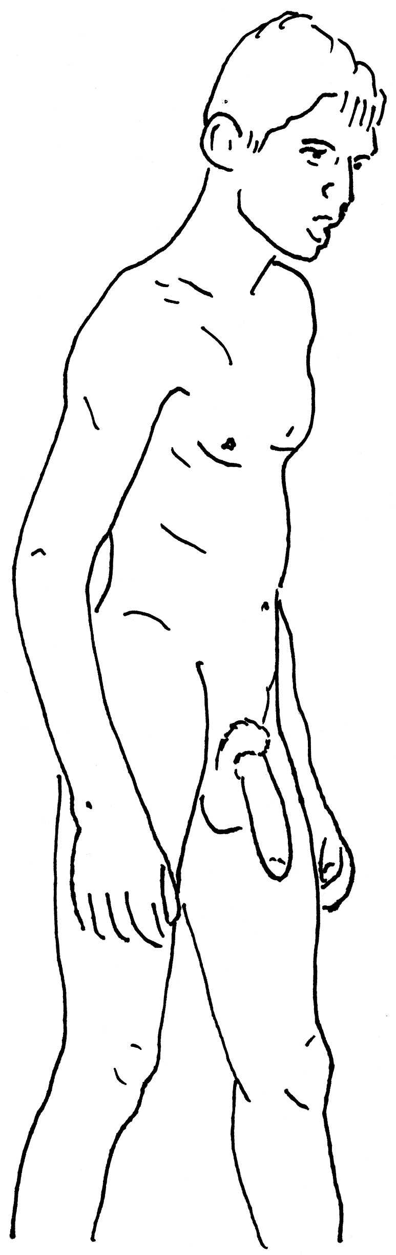 I stand there as Joey pulls my Speedo down. The teasing had engorged the head of my dick, while the shaft still hangs down.