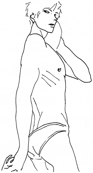 I walk back to class, amazed at how close I came to skipping for the day. I still feel outside of myself. I slip into Biology lab only a few minutes late. I cannot shake the feeling I am watching myself go through my day, rather than living it. Too much pot, I surmise. At afternoon practice, I really put out the needed effort. Once we are done, I feel my head is clear. I ask Scott if I could come to dinner at his house. We ride to Kendall together on our bikes. He is in a light mood. I appreciate the escape from wanting to hang around with Robby and the stoners. We even sit in his room doing homework, until Mrs. Watt reminds me that Scott is not allowed to have anyone sleep over. I ride home and go right to bed, not even checking Robby’s house. I am asleep in an instant, telling myself I am done burning the candle at both ends. I dream about Shylock, except it’s Coach demanding his pound of flesh, while Robby dances around in the background. The sight of Robby in a Speedo is unsettling.