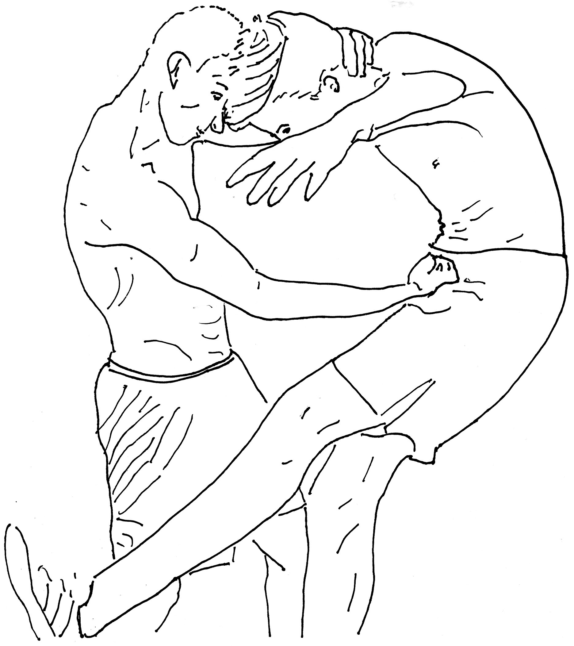 We get stoned, listening to hard rock and feeling totally connected. Once the high wears off a bit, my back becomes uncomfortable. I get up to stretch. When I sit down, Jace starts giving me another back massage. Robby quickly sizes it up.