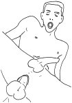 He is ready to go again and finish what he started but went off too soon. I roll over on my back, with my dick popping as it pulls out. It reminds me that he has just been de-virginized. We do not stop for a souvenir picture. He jumps on me fully erect. I position my legs up so my feet hang over his shoulders. He takes me as aggressively as I did him. I am able to slow his rhythm down just a bit, so I can fuck back as he thrusts into me. Looking into his faraway eyes as he mindlessly fucks me is a tremendous turn-on.