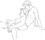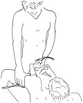 I keep thrusting as hard as I can. He becomes the passive recipient of my fuck. Soon the limp dick between my belly and his groin is back to full alert. I keep up the fucking. He cums again, which pushes me over the edge. Holding him perfectly still, I cum once, then a second time, and then a whole series of eruptions. I finally collapse, letting his legs come free from my elbows. He pushes my shrinking cock out his ass, rolls me so my face is buried in the pillow. He enters my ass from the back, also without foreplay. He pierces me so I know what he felt and also what it feels to want more and more.