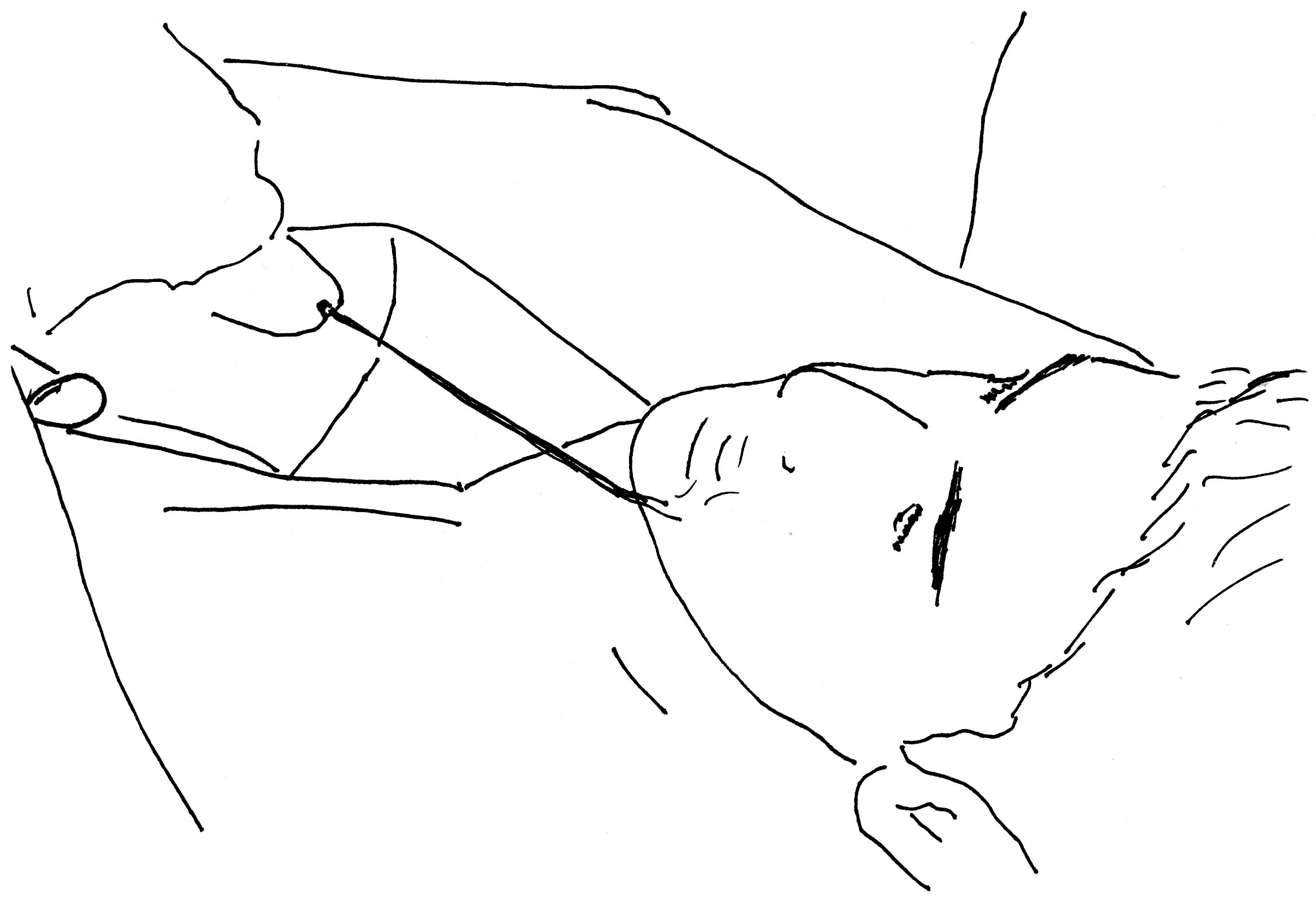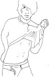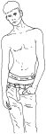 “Okay,” as he starts to pull down his jeans.
