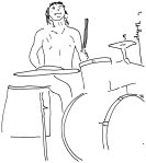 “Drummers don’t have to wear anything special. No one sees you behind your kits.” They both have elaborate drum sets, with double bass drums, three sets of tom toms, a snare, high hat, and three cymbals – thirteen different drums.