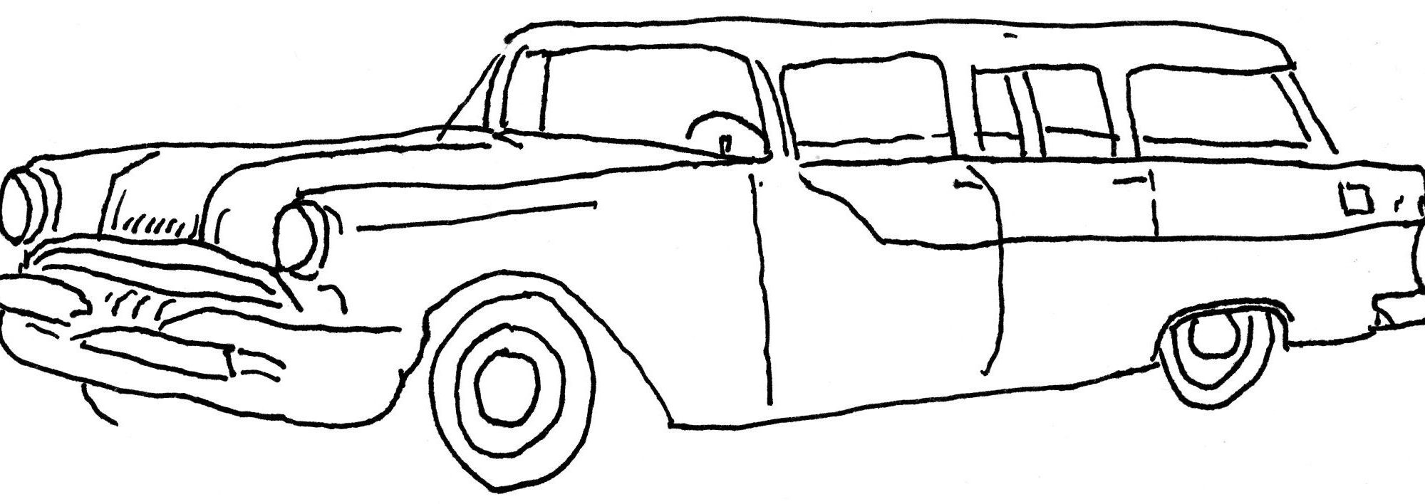 We all think he is going to run us over, so we run up on the lawn. This time he stays on the road and tells us to get in.