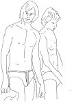 The girls with credit cards go dashing to purchase that style for their boyfriends. Some of the boyfriends are dragged along and sent to the boy’s bathroom to change, once their briefs are paid for. When the boys don’t return, Jack and I are sent in to rescue them from each other. There’s a group of five of them posing for each other in the mirror.