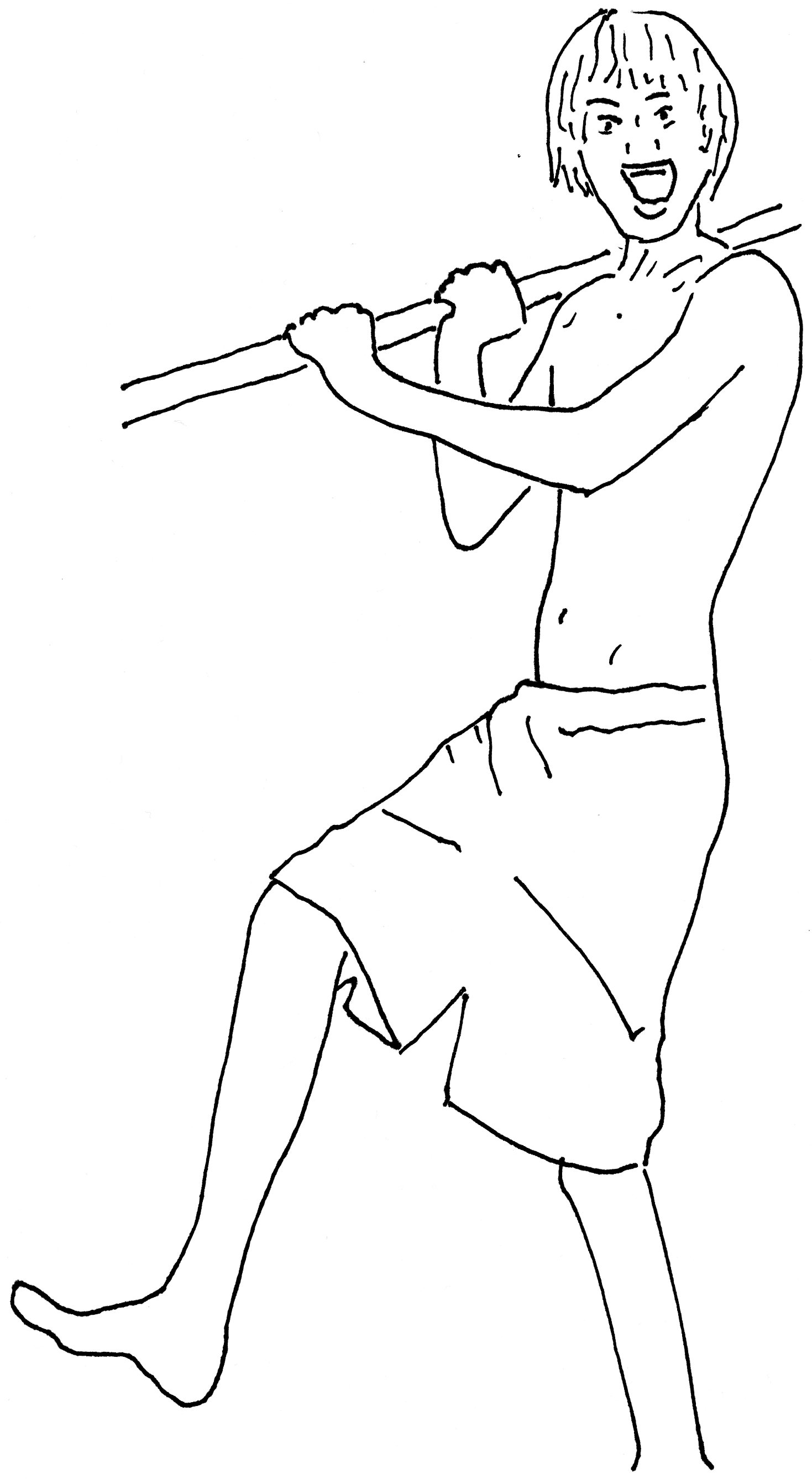 Walking along the riverfront he finds a tree-lined park. He is off through the branches. We all follow him with the uncles watching in amazement as we swing Tarzan-style from branch to branch.