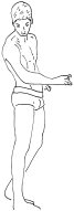 He gets us to walk up and back with our skivvies showing above the waist bands of our jeans.