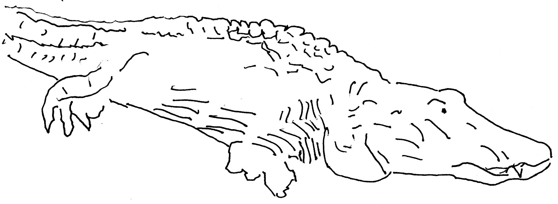 “You gots ta stop bein’ so afraid. ‘Gators only attack when their young’uns is threatened,” I espouse Mr. Watt’s theory.