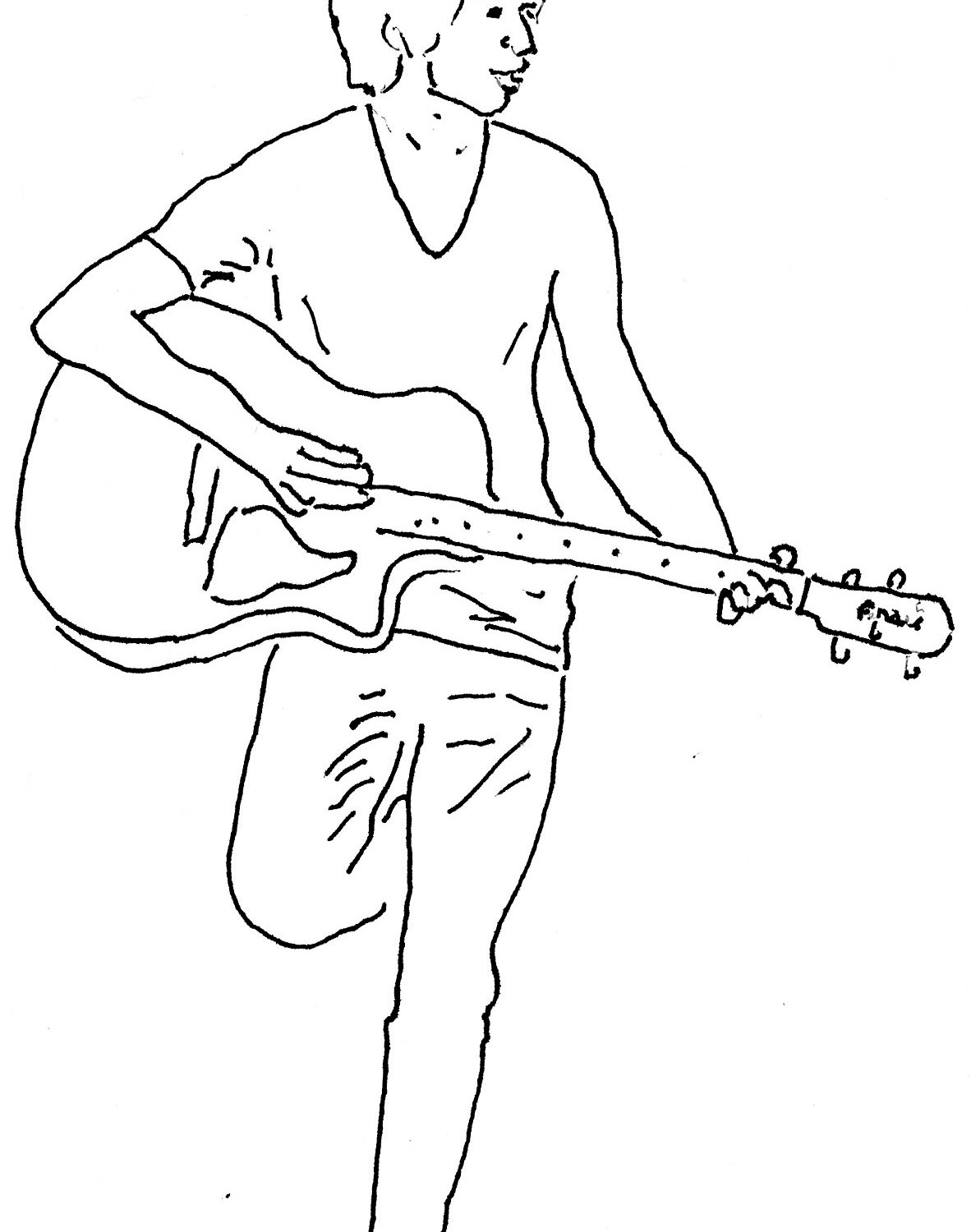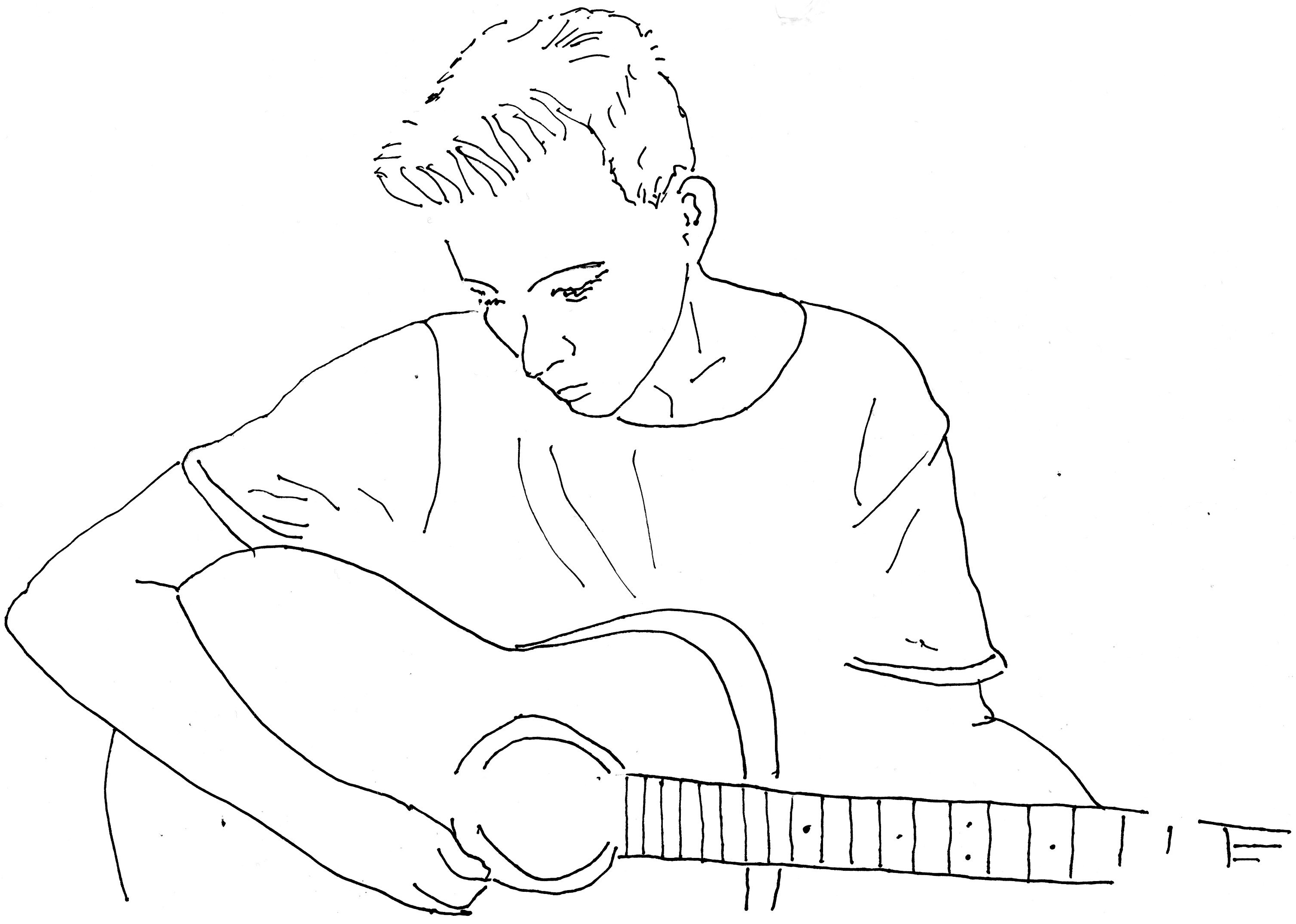 I grab an acoustic guitar and start playing ‘Barefoot Boy.’