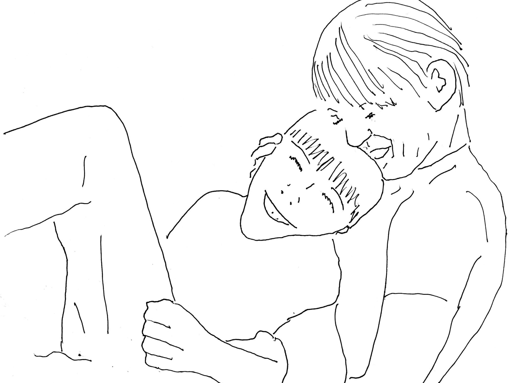 I lay on my back, looking at the ceiling with a raging hard-on, not daring to move and wake him up. I must have fallen asleep because it is morning. We both are stiff from not moving all night long.