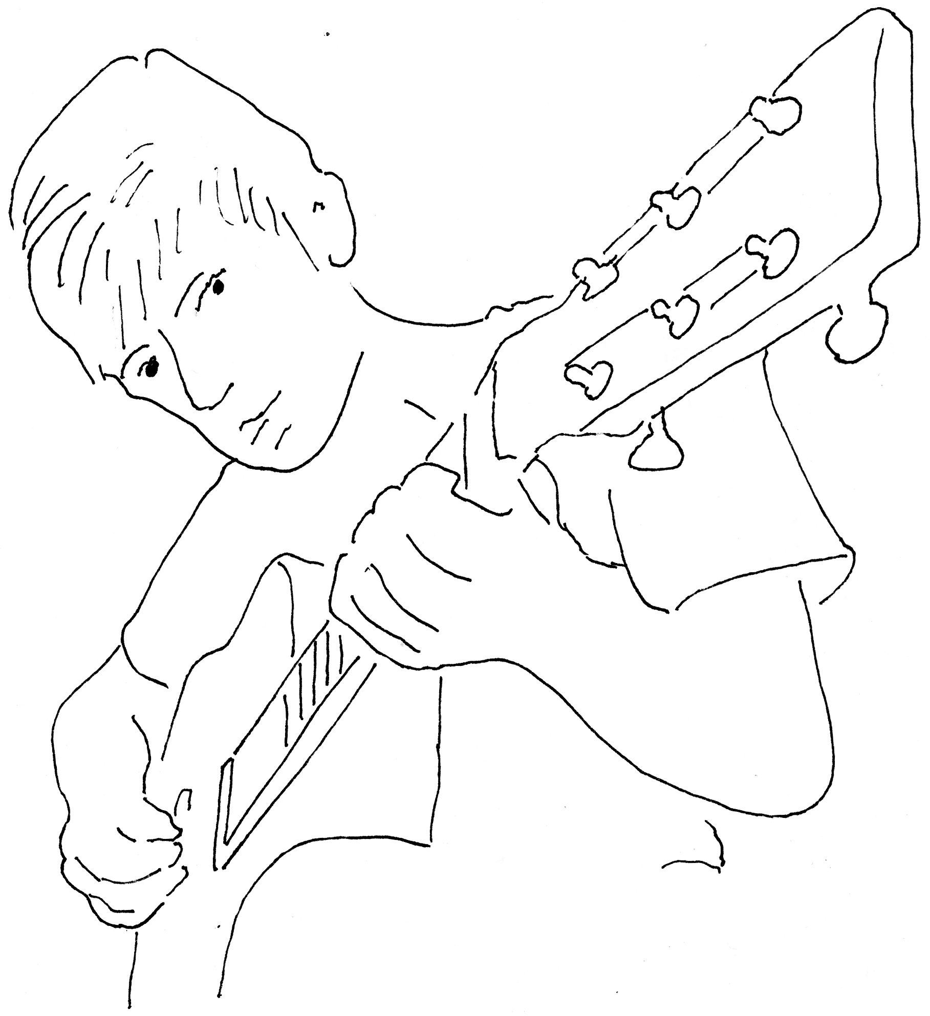 What a lame poet. He runs upstairs and brings down his guitar and practice amp. We play ‘Don’t Fuck with Me,” to the girls and moms.