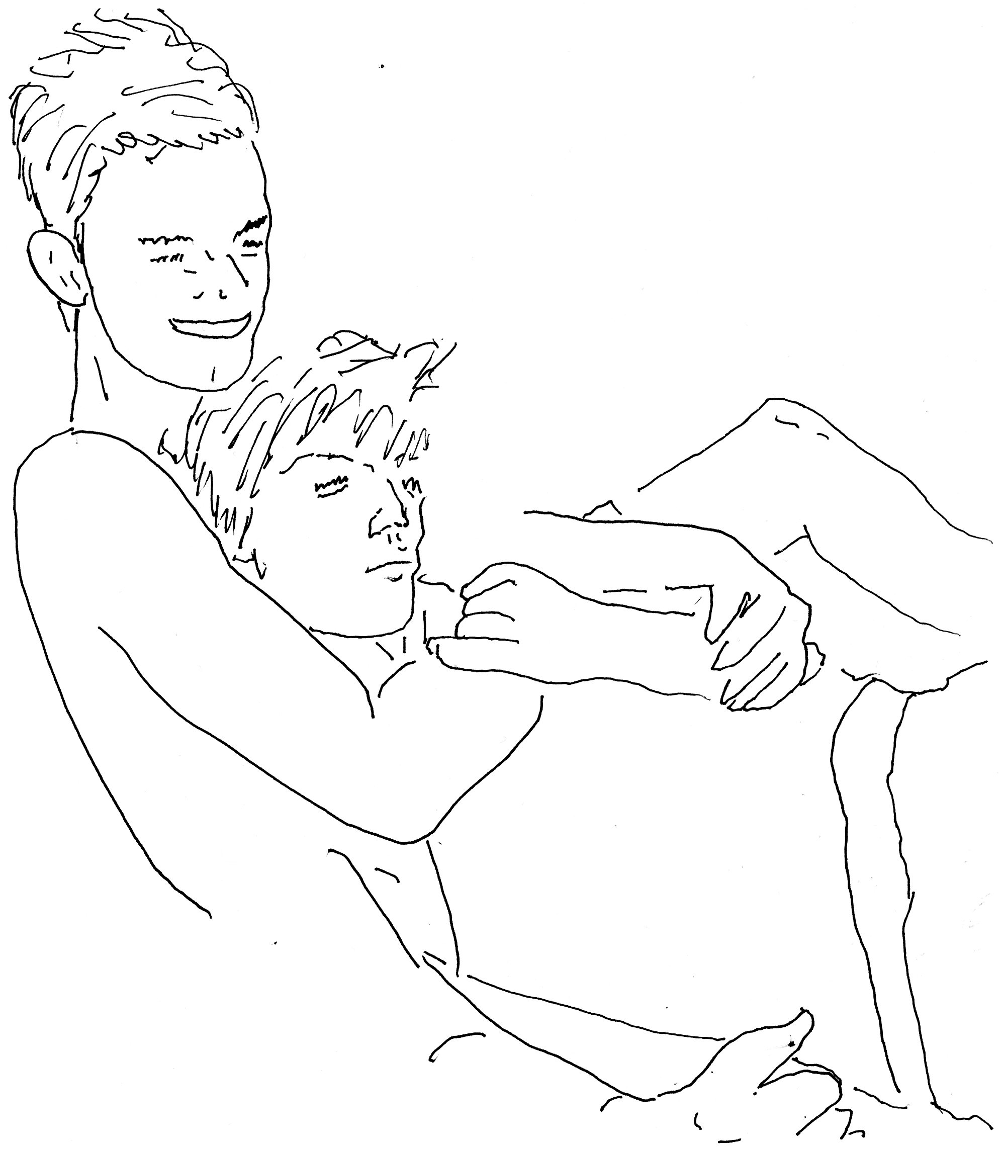 Tony perks up. Both of us go over to Doug and start molesting him.