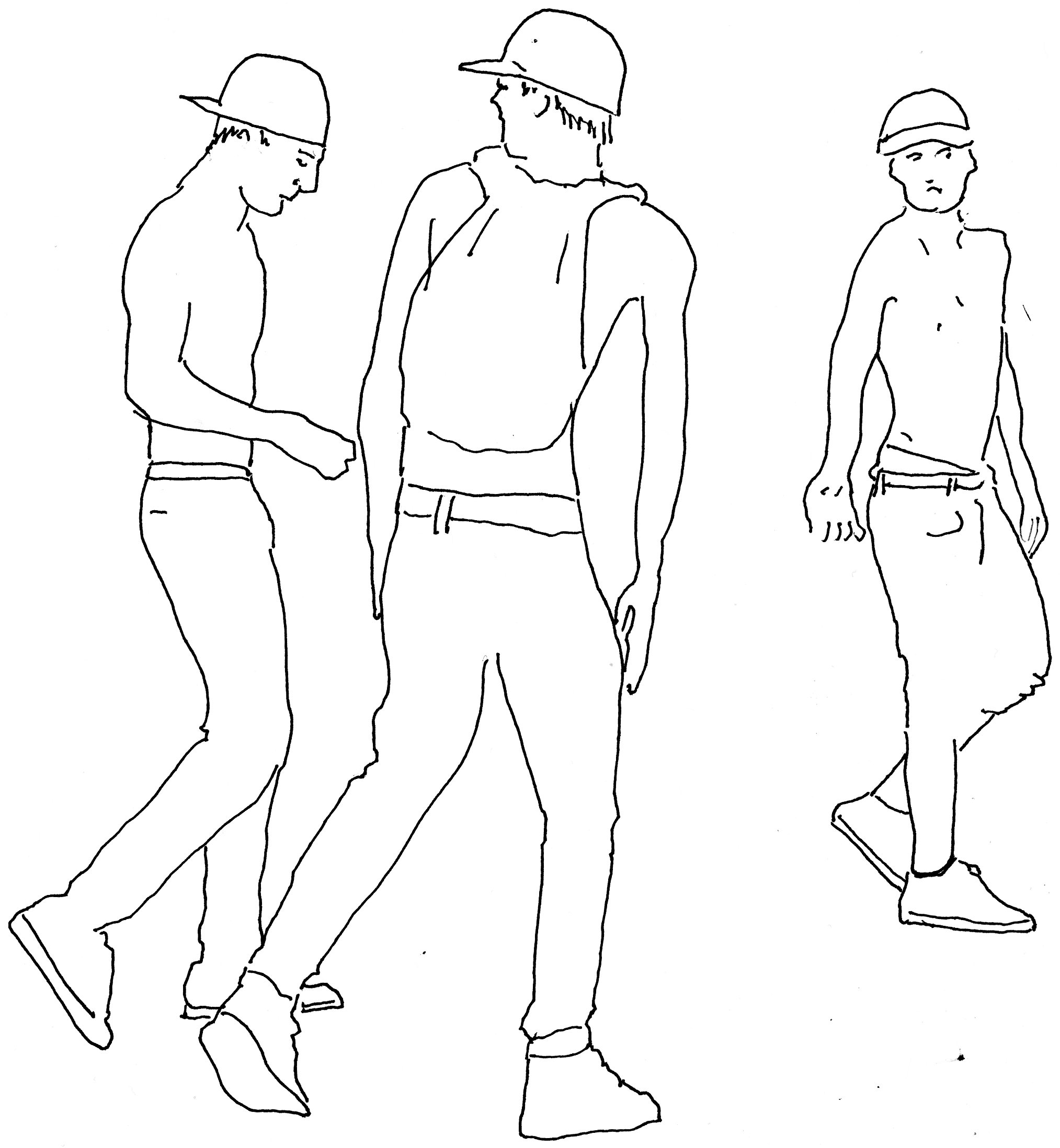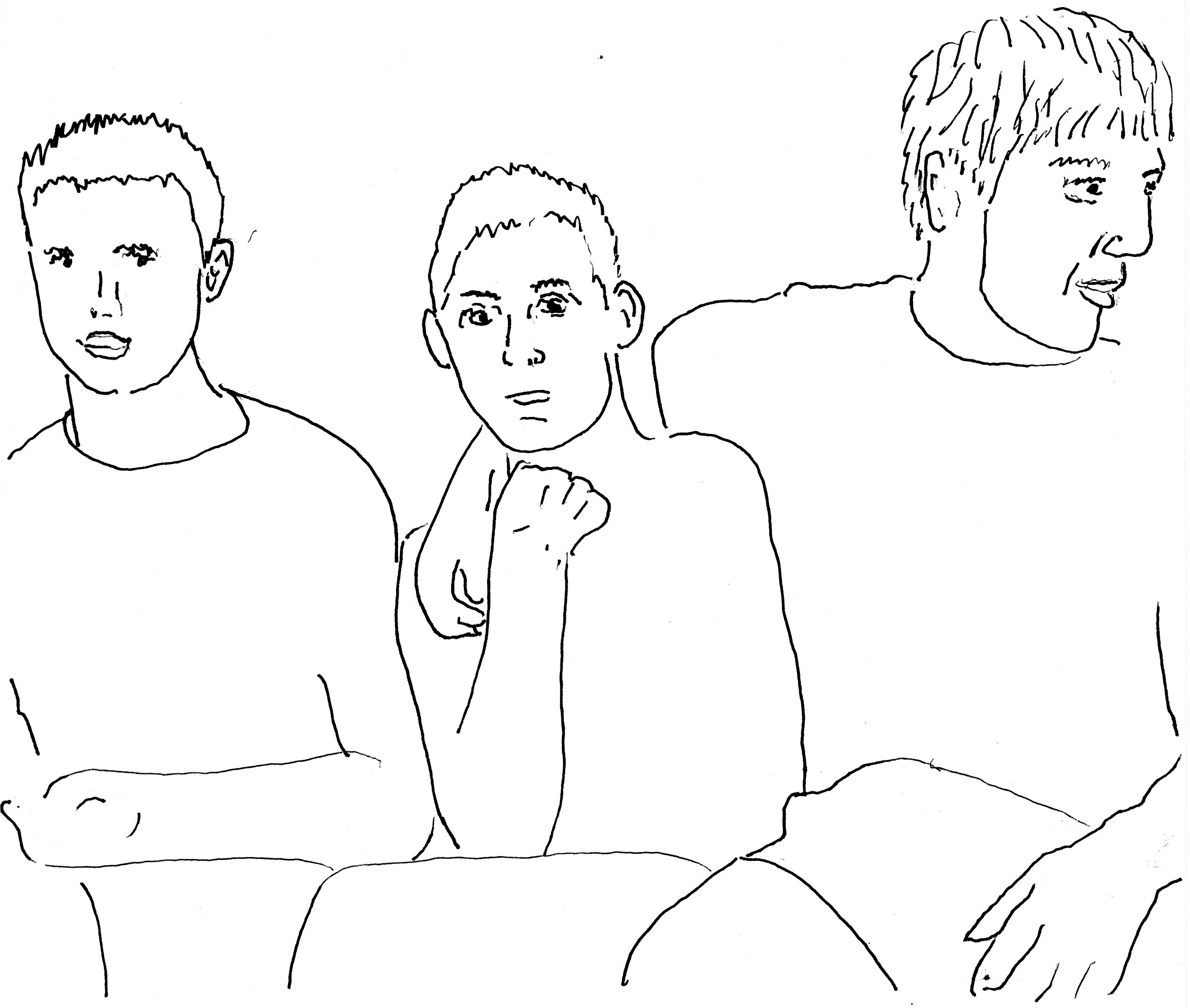We get up. Tony pulls up his jeans.