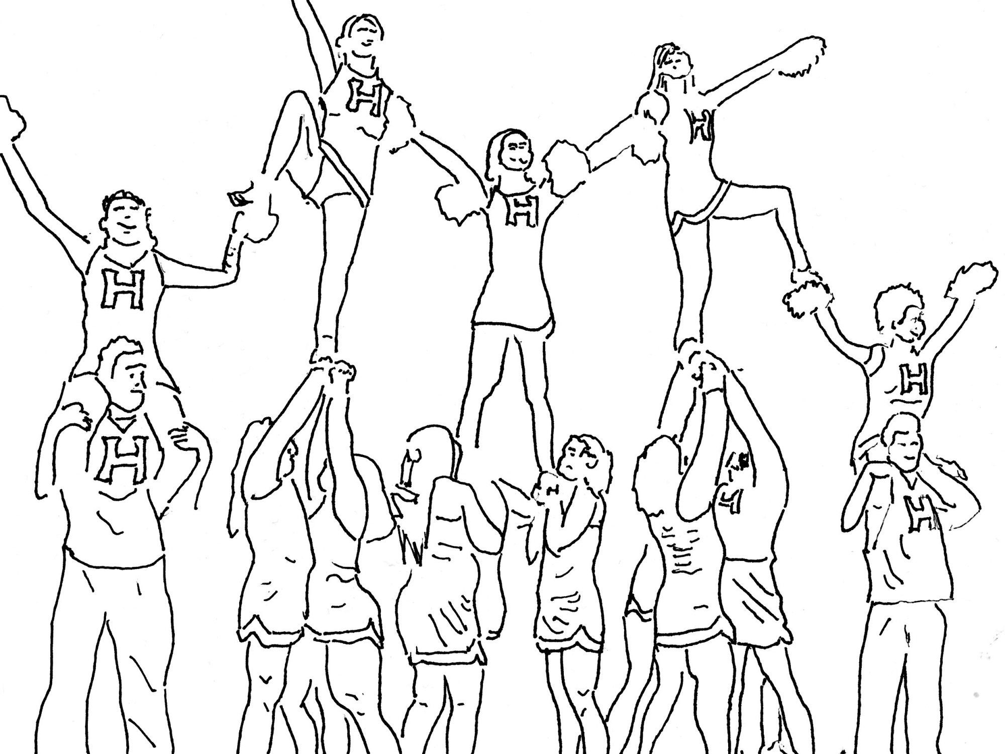The second half is about to start. The male cheerleaders troop out and began building their pyramid. They each strip off their bulky sweaters and show off some pecs. The students all cheer, not realizing how faggy it is. When the girls run out to build the pyramid apex,