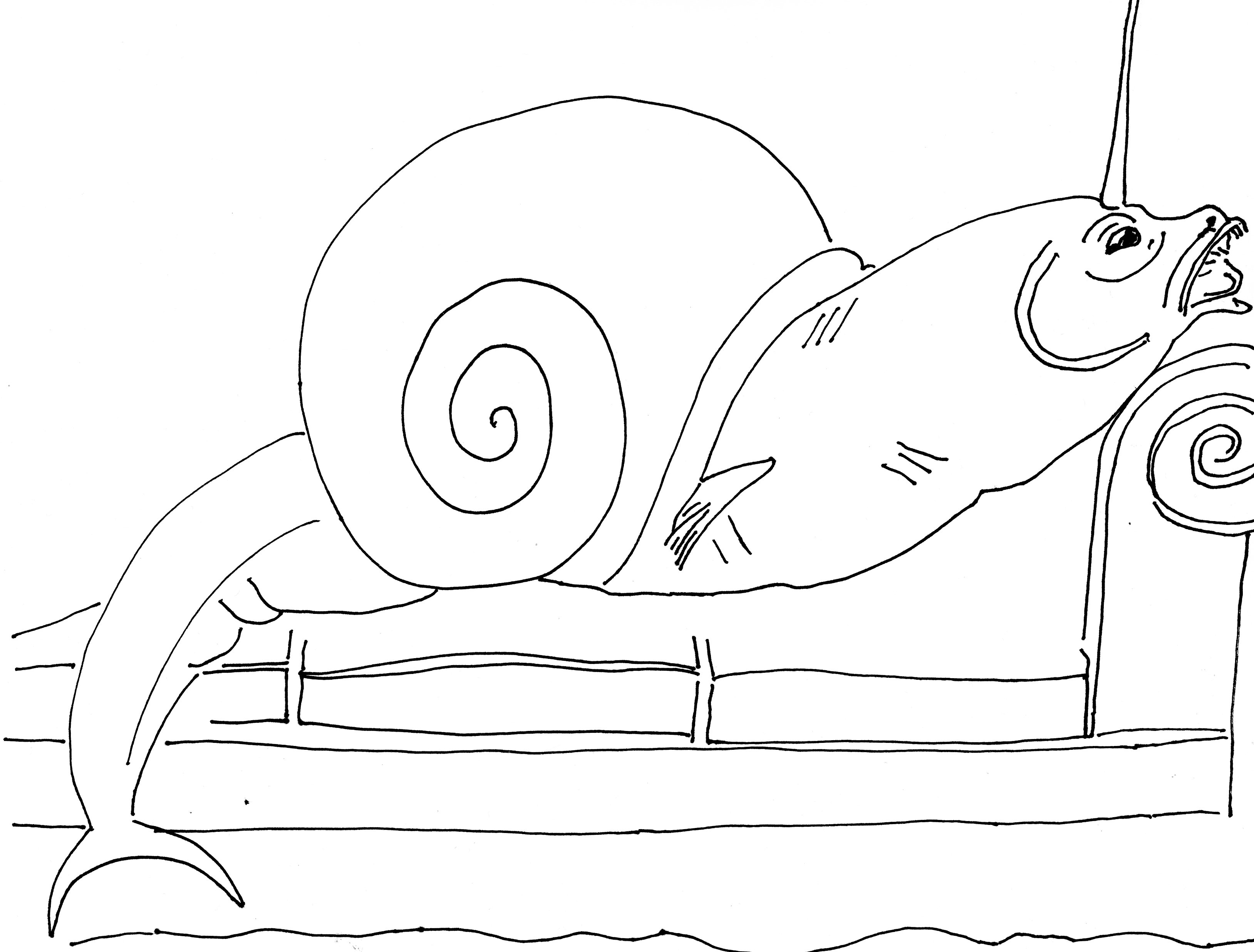 Gorey’s studio is actually a separate work space in a large walk-up apartment of an old building. It is not Alphabet City. He states he has been there since after World War II. I insist he show me all the prints and actual canvases he is working on. He is more than an illustrator, with a complete artistic aesthetic and sensibility. He glows from my praise. He is a successful artist but suffers from the critics’ label of being ‘middlebrow.’ There is a sketch of a slug reclining on a couch that strikes me as the perfect metaphor for Julian’s pothead attitude.