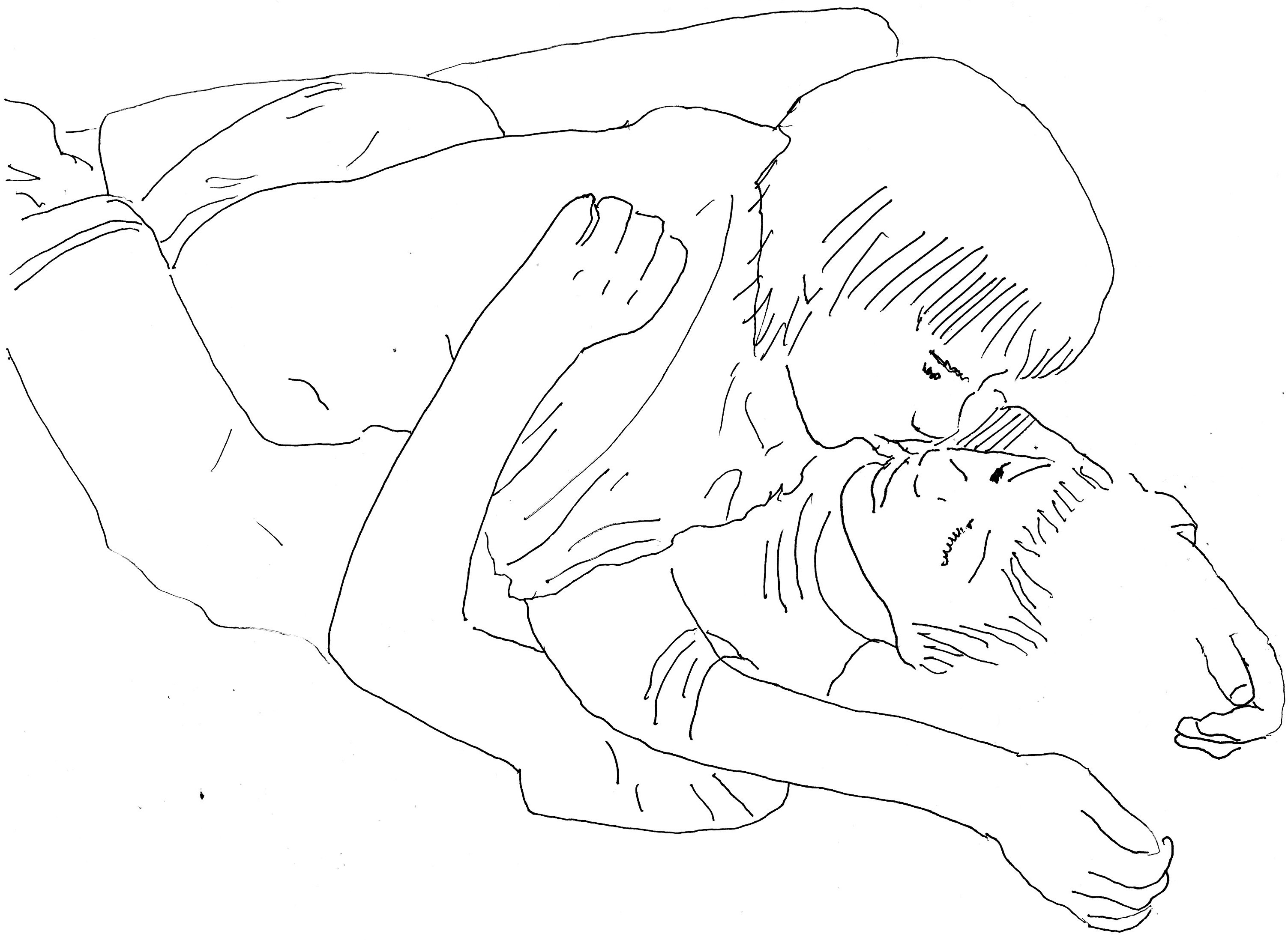 He starts crying. I hug him while he shakes.