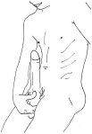 It is not an issue. Once behind closed doors, I pull down his jeans. He remains ready to go, if a bit sticky. I lick the sweet jizz from his lower abdomen. He starts to shake again, ready to go off a third time. I pull away and sit behind him on the bed. I massage his shoulders and back, while he shivers, finally calming down without cumming. He relaxes and leans back into my arms.