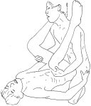 Remembering how I handled Tommy’s first time, which we called panther fucking, I stick just the tip of my dick inside his ass. He grabs it with his anal lips and squeezes in sync with my tongue thrusts. His breathing is ragged and wheezing. He starts to shake, about to cum. I pull out and rotate so he’s on top of me, his straining dick at the lips of my asshole. He acts stunned for a second. His breathing returns to normal. I pull him fully inside me.