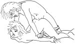 Once the pulsating stops, I reach up and pinch his hard as pebbles nipples, making him squirm from the pain and stimulation. The tip of his dick is knocking against my tonsils, as it jerks. His legs wrap around my back, pulling me off his dick. He wants to be kissed. I scoot up and we french intensely. I hook my arms under his knees, lifting his butt off the bed.