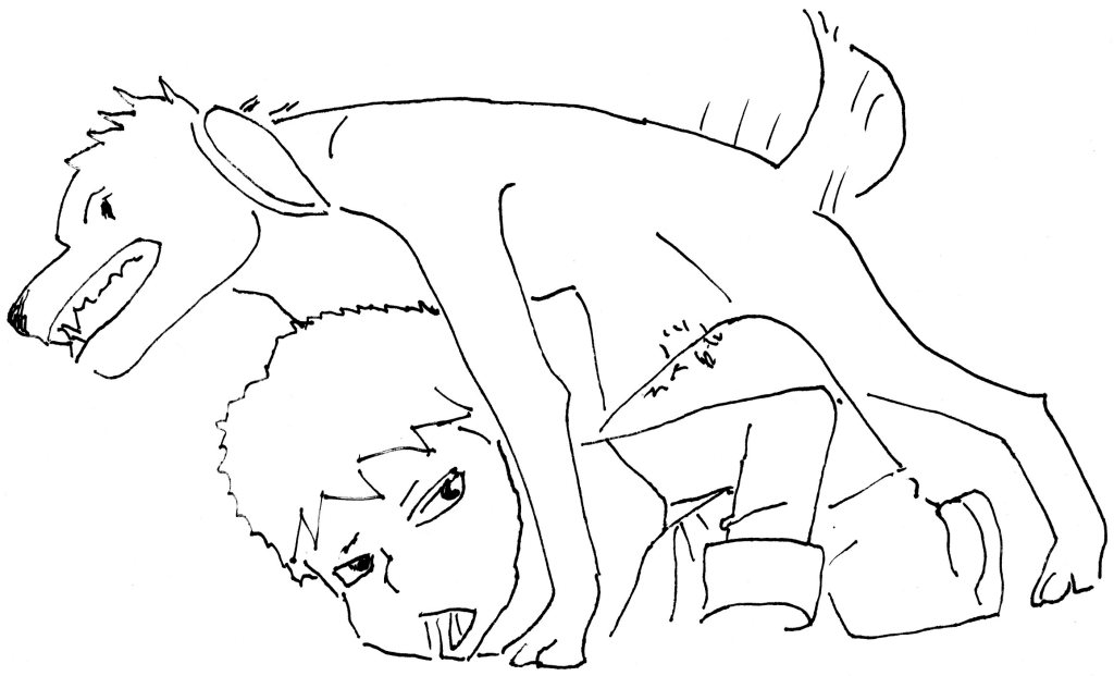 I still can hear the moans and grunts; finally Freddie screams as the act reaches its climax. Max’s panting is especially distressing. I even hear them uncoupling, or so I think. Time to return to my normal body and enjoy the fruits of Max’s labors.