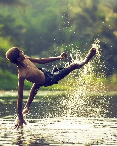 We start splashing and dunking each other. I am so worked up that I pop halfway out of the water, yelling, “Whahooo!”