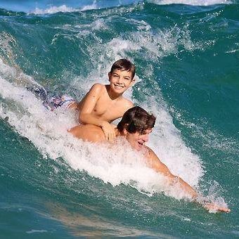 We drop into the pool. I hold him up with a hand on his belly while he thrashes his arms to propel toward the other side of the pool. I give him pointers on how to cup his hands and stroke his arms to push the water backwards. I teach him to kick his legs while holding on to the side of the pool. He lifts his head out of the water instead of turning to breathe, causing his legs to sink. I steady him again with a hand on his stomach. I cannot resist tickling him. He goes into hysterics which only encourages me. Soon we are splashing and pushing each other under water. Freddie yells at us to go play elsewhere. We grab towels and walk down to the lake front.