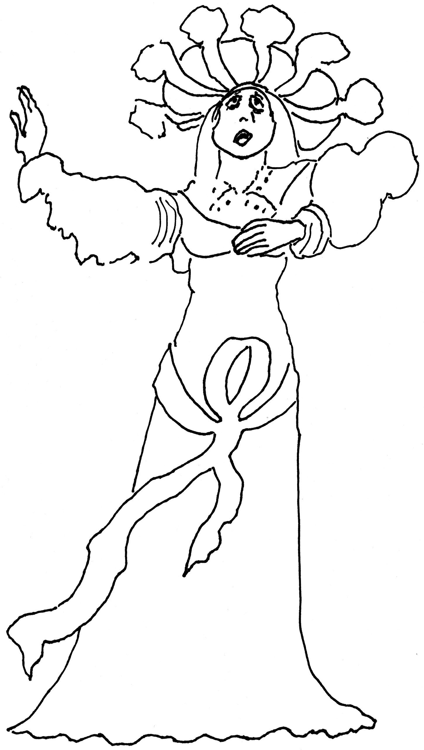 As Titania in blonde wig, I come next, followed by my train in their varied wigs, to the jeers and laughs of the audience.