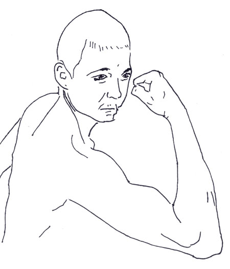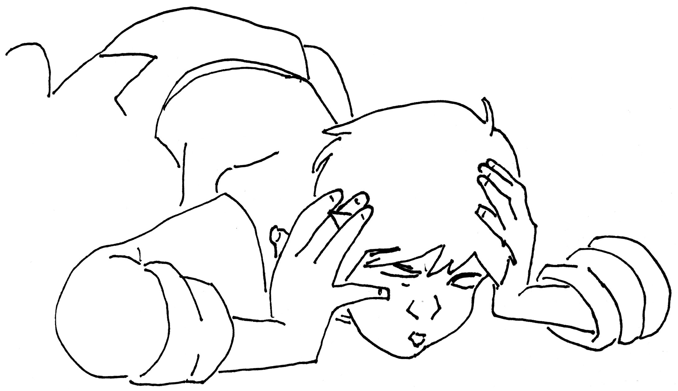 shouting and pointing at me. John kneels down and holds my head from banging the floor. My eyes stop twirling and I see the look of concern on his face. I shake my head and try to stand up. My legs don’t work. I flop on my back and am shaking all over.