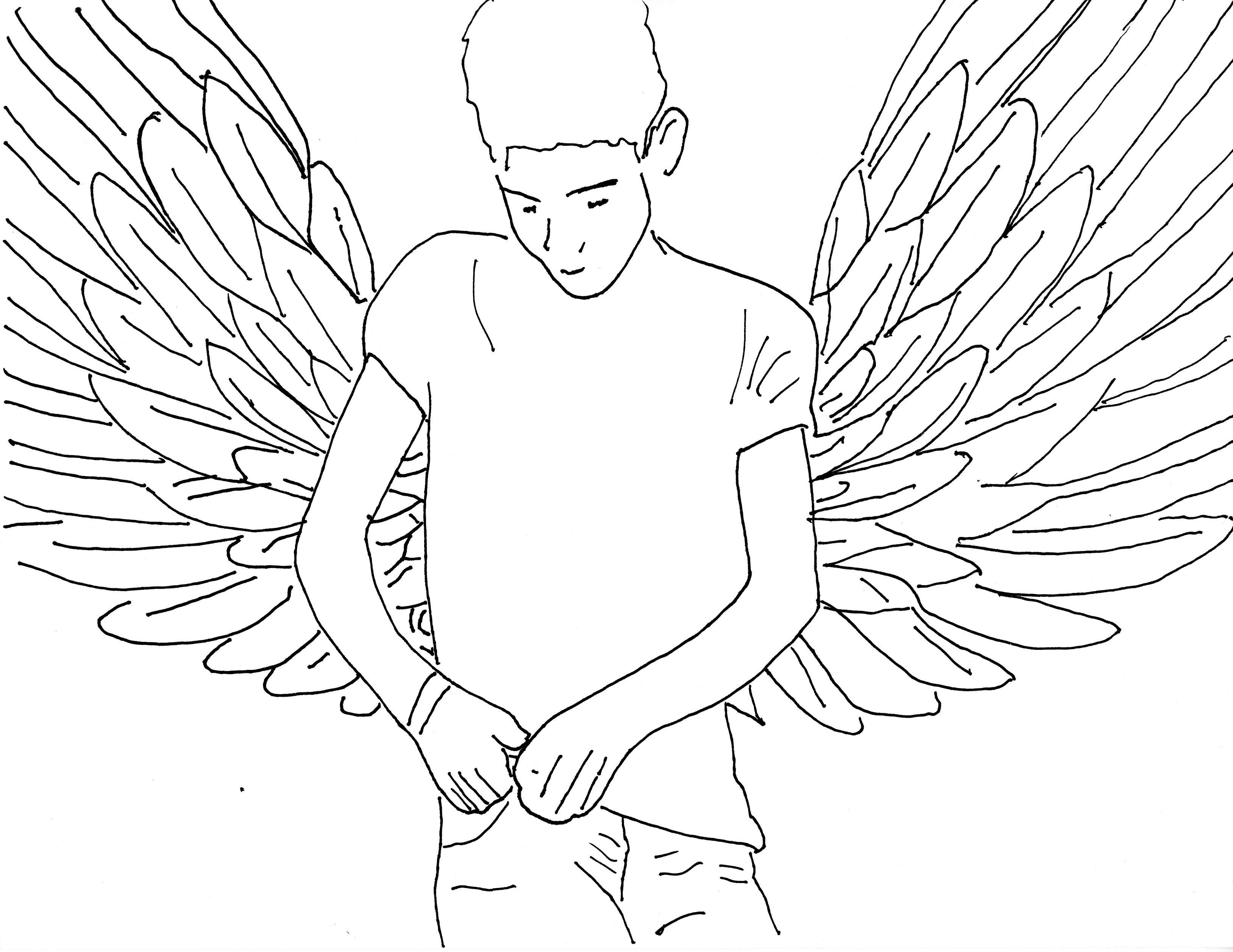 “No, watch as I stop his tears,” the angel leaves me hovering as he lands and approaches Tim.